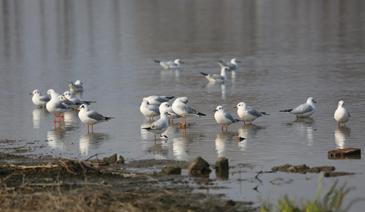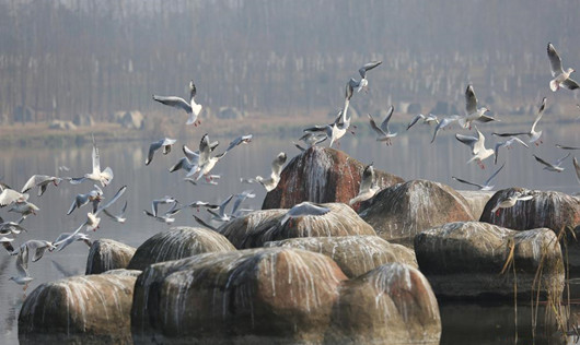 2016年12月31日上午,数千只红嘴鸥齐聚滨湖新区塘西河公园。它们时而在水面飞翔,时而在岸边浅水区觅食休息,场面十分壮观。