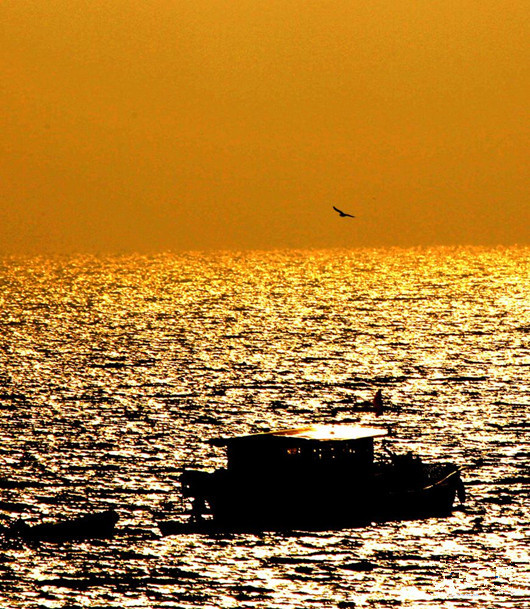 2016年12月28日,受较强冷空气影响,合肥雨后天晴,气温陡降。高积云如鳞飘在天空,太阳从湖面升起,像红色的灯笼高悬。金色的霞光洒在湖面上,与湖水相映照如画卷一般美丽。(新华网)
